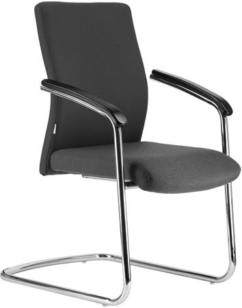 Modern megjelenésű tárgyalószék szövetborítással, fém szánkótalppal. A komfortérzetről a vastag párnázatú ülőfelület és támla gondoskodik. Karfája műanyag támfelülettel ellátott.