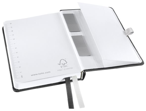Jegyzetfüzet, A6, kockás, 80 lap, keményfedeles, LEITZ "Style", szaténfekete