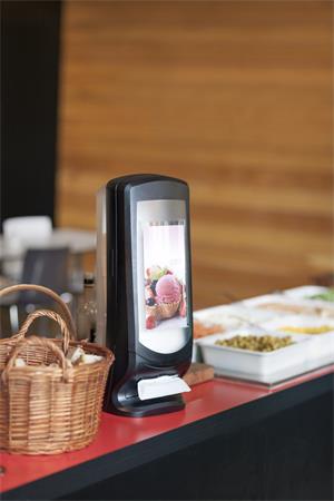 A személyre szabható AD-A-Glance panel hirdetőfelületként használható a termékek népszerűsítéséhez és a vendégek megnyeréséhez.