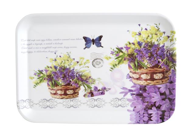 Tálca, műanyag, szögletes, levendula mintás, 34x23cm